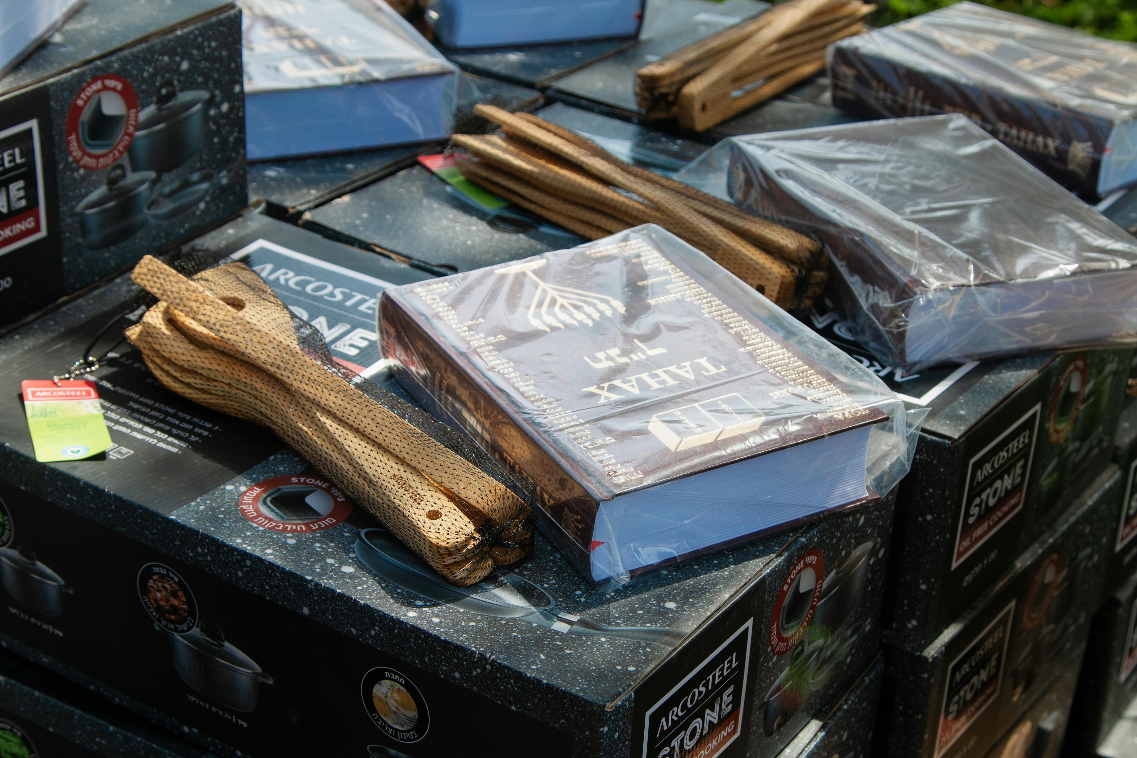 Welcome gifts distributed last year, including blankets, kitchen supplies, Tanakhs (Gen.–Mal.) and school kits