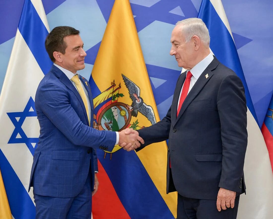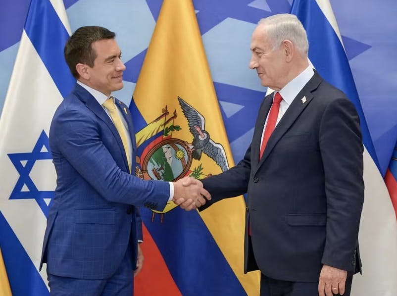"Ecuador e Israel comparten una gran amistad", declaró Netanyahu. "Queremos trabajar estrechamente con nuestros amigos por los valores que compartimos como países verdaderamente democráticos, que buscan la prosperidad, la paz y la seguridad".