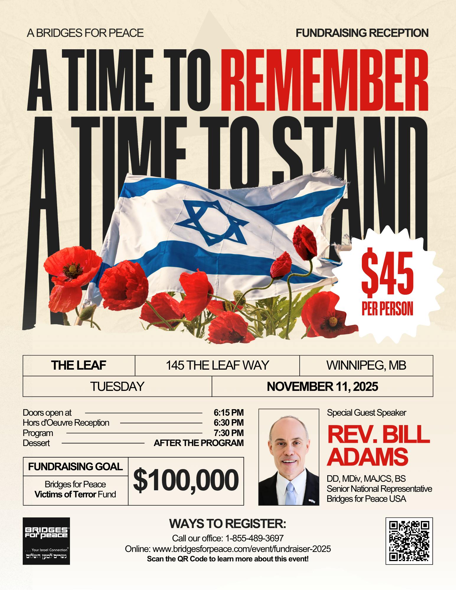 This is our most significant annual fundraiser, providing an opportunity to bless Israel from across Canada in solidarity and shared purpose. We warmly welcome donations from across the nation to support this cause. On this Remembrance Day, as we honour those who gave their lives for freedom, we also turn our hearts toward Israel, standing with her people and affirming our shared commitment in these challenging times.
