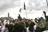 Pigeons are released by Arab and Jewish children in Jerusalem in support of Shalit. • Photos by Isranet