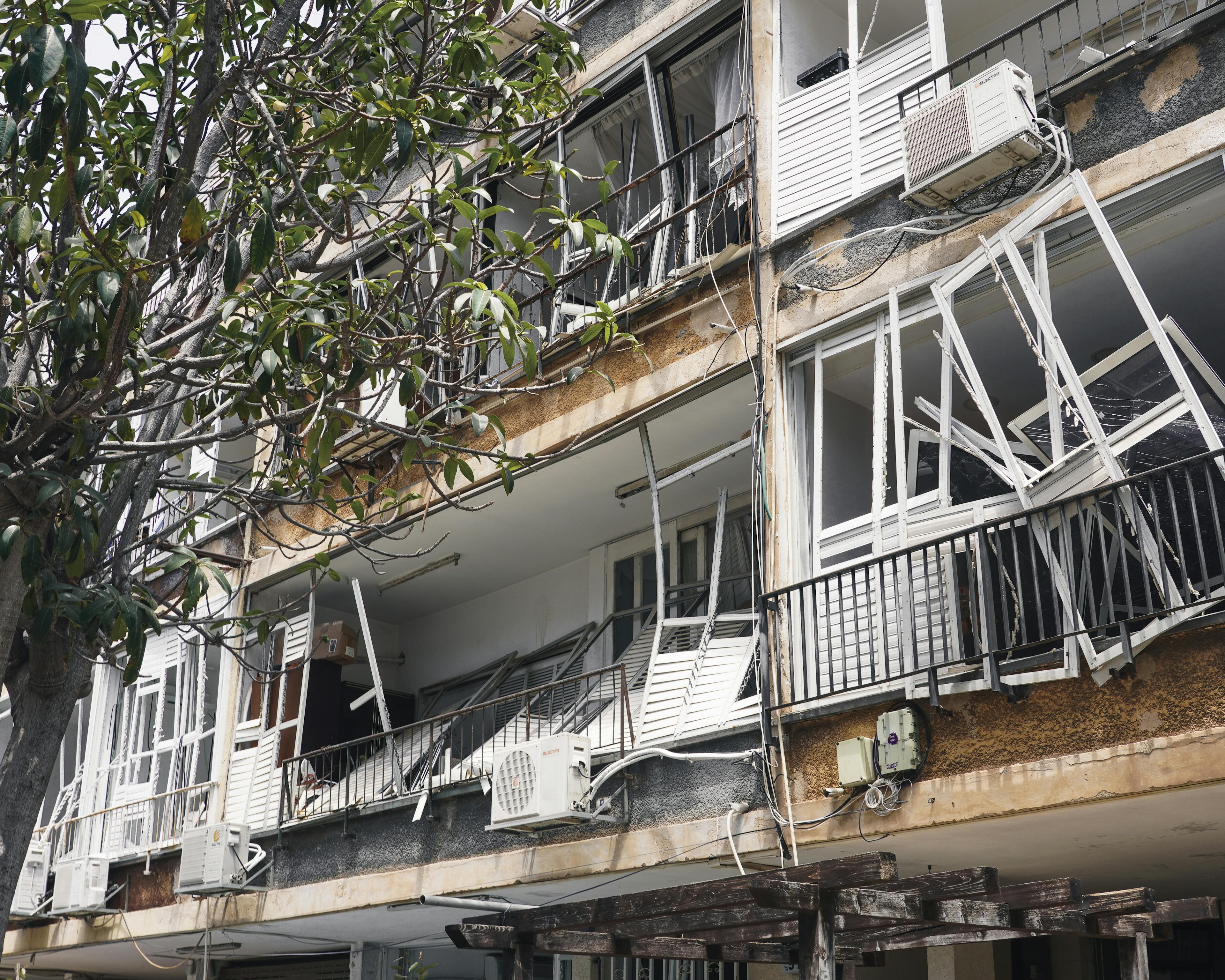 A third resident who returned home said: “We were in the safe room when there was a very loud boom. We saw chunks of plaster fall to the floor. We learned via the building’s WhatsApp group that our building had been hit and so was the parking lot nearby. Someone asked if everyone was okay. When they told us to evacuate, we barely managed to open the door. All the ceiling, hallway, and doors had collapsed and blocked the way. No windows, no doors, every room is ruined. We were fortunate to get into the safe room, because in the bedroom the window and the balcony door blew onto the bed. We left miraculously—but the house is destroyed. The only things we took with us were ourselves. I barely managed to grab my shoes and my bag.”