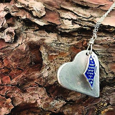The twisted and jagged pieces of Qassam rockets are hardly attractive—the remains of a weapon of war, intended for death and destruction. However, once the metal pieces have undergone the process of cleaning, grinding and polishing, they become works of art, things of beauty. Many of the couple’s striking necklaces incorporate the shape of the Land of Israel or the Magen David (Hebrew for the “Star of David”).