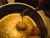 Tips: If oil temperature is too low, they fry too long, absorb a lot of oil, and become hard. If too hot, they fry too quickly, taste raw, and burn. They won’t be perfectly round. Less water in the batter helps control the shape better, but a wetter batter makes them less doughy, light and crisp.