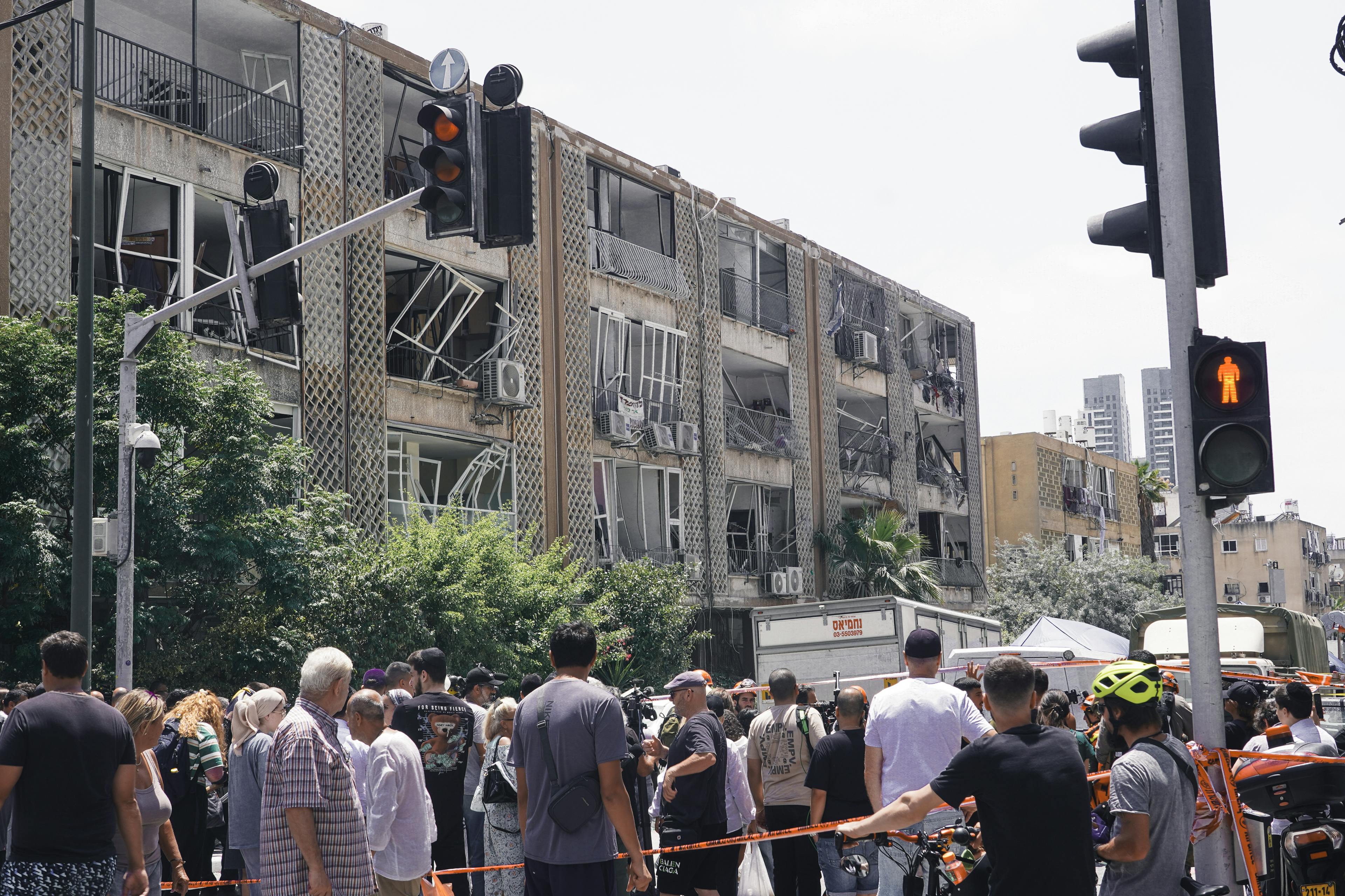 Hours later, rescue crews recovered the body of a man in his 80s from the wreckage of another building in nearby Bnei Brak, where a school was also damaged.