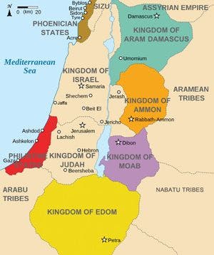 The people were actually close kin to the Israelites, having descended from Abraham’s nephew Lot (Gen. 19:36–37). Their religion, although polytheistic, was dominated by the pagan god Chemosh. This false deity is frequently mentioned in the Hebrew Scriptures and, like his counterpart Molech in Ammon (north of Moab), he required human sacrifice for propitiation. Though the Moabites worshiped Baal and many lesser gods, it was on the altar of Chemosh that they sacrificed their children.