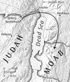 Moab was the district extending the length of the eastern side of the Dead Sea. Although exact numbers are not known, it is thought to have been a heavily populated area, very fertile and prosperous as evidenced by the many cities and towns known to have existed there. As in other parts of the Middle East, having enough water was a constant issue, and Moab’s rivers and streams relied on winter rains for replenishing.