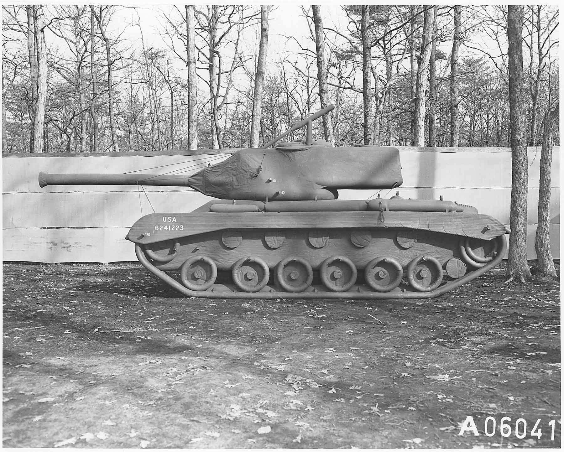 The 23rd relied on four tactical areas to accomplish ruses that helped deflect German units from the locations of larger Allied units. The largest of the four handled visual deception and were known as camoufleurs. This unit was equipped with inflatable tanks, cannons, jeeps, trucks and airplanes, all able to be unpacked and inflated by air compressors in less than twenty minutes. Once inflated, they were partially camouflaged so that enemy aerial reconnaissance could spot them. Two bulldozers traveled with the unit and were used to create mock airfields and the tracks that real tanks would have left in the dirt. They created dummy troop bivouacs, complete with fake laundry hanging on clotheslines, motor pools, artillery batteries and tank formations in just a few hours. Their work was so convincing that an allied plane occasionally actually landed on their “airstrips.”